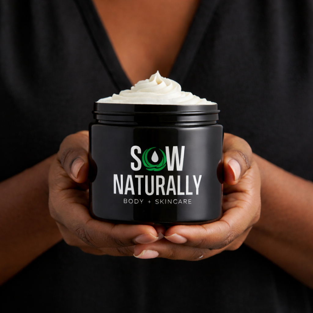 We create handcrafted body butters, exfoliating sugar scrubs, and cooling mists designed to nourish skin and support moments of heat, sensitivity, and rest.